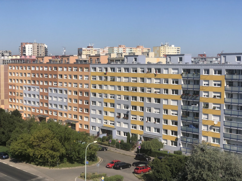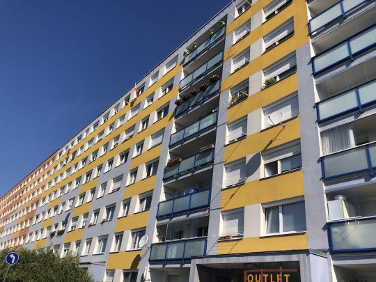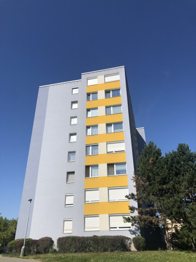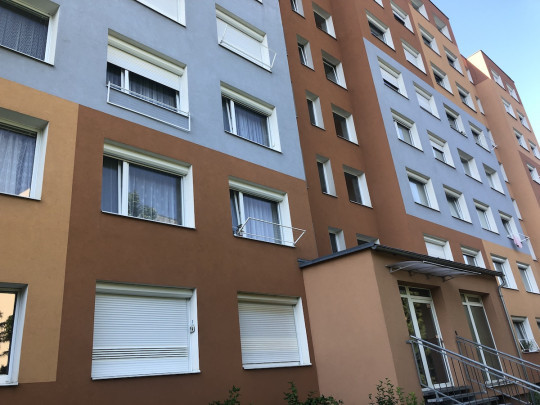Bytový panelový dům nacházející se v blízkosti komunikace. Polovina oken je orientována na jižní stranu a směrem ke komunikaci.